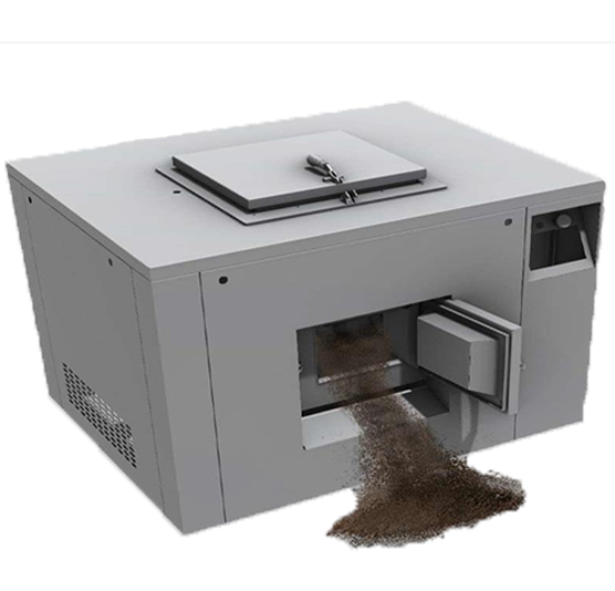 - As the water gets drained off, and with the heat the waste will be dried and the agitation process will convert it to powder form.
